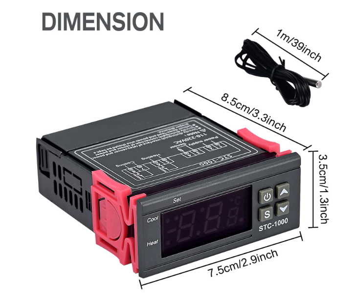 • ❃❃ Spécifications du thermostat numérique STC-1000: Plage de contrôle de la température: -50-99 ° C. Précision de contrôle de 0,1 degré Celsius. Contrôlez la température en définissant la valeur de réglage de la température et la valeur de différence; Calibrage de la température. Fonctionnement facile, pour régler la température de démarrage, la température d’arrêt, la correction de la température corrigée, le démarrage du retard.